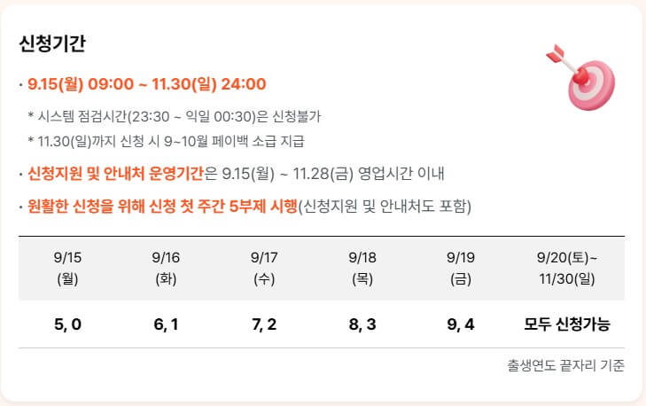 상생페이백은 2025년 9월 15일(월)부터 신청할 수 있으며,